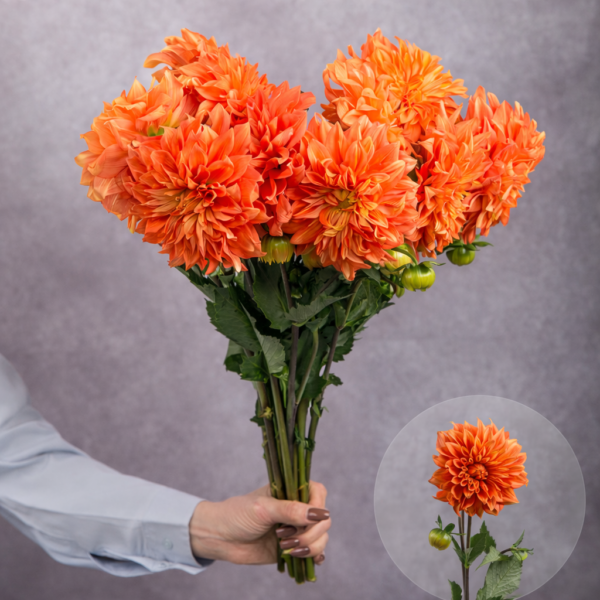 Be the first to review “Dahlias Bright Orange 5 stems per bunch”