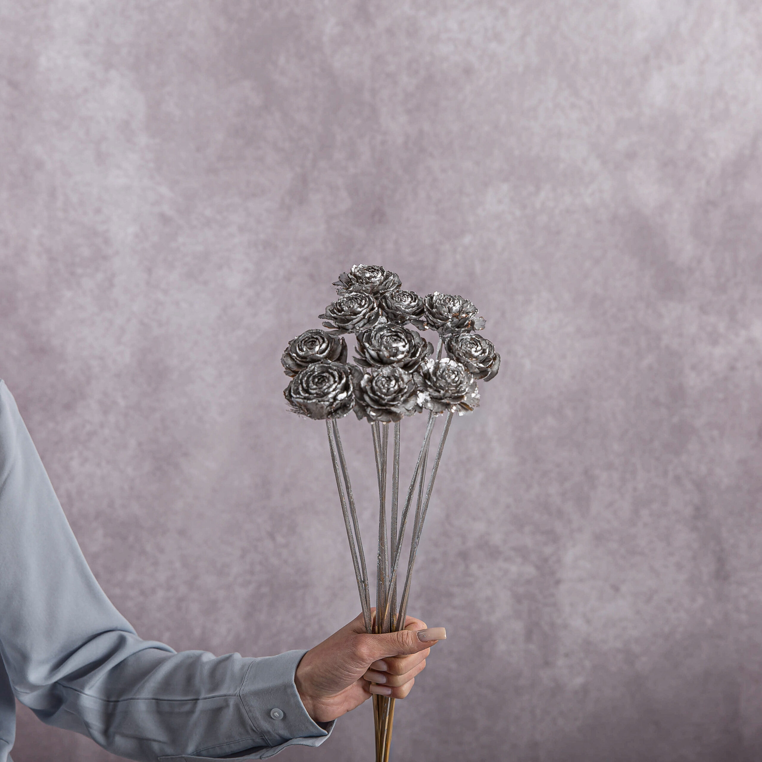 5 stems per bunch Country Of Origin: Netherlands Main Colour: Silver Height: 50 CM
