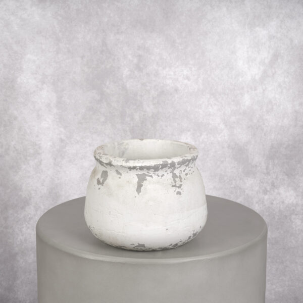 Dimensions (L x W x H) 6 x 6 x 5 in Colour: White Material: Cement Shape: Flared Cylinder We try to display accurate product information. However, manufacturers and suppliers provide rounded figures, which are displayed here.